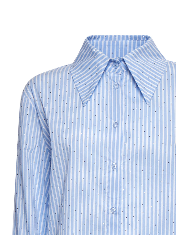 Un capo che rivisita la camicia a righe in chiave contemporanea grazie a un colletto oversize dal forte impatto. Versatile e dinamica, si presta a essere indossata sia aperta sia chiusa...