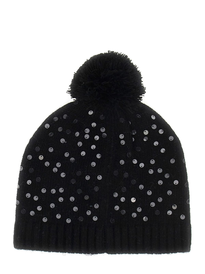 Cappello nero con paillettes nero su nero e pon-pon
