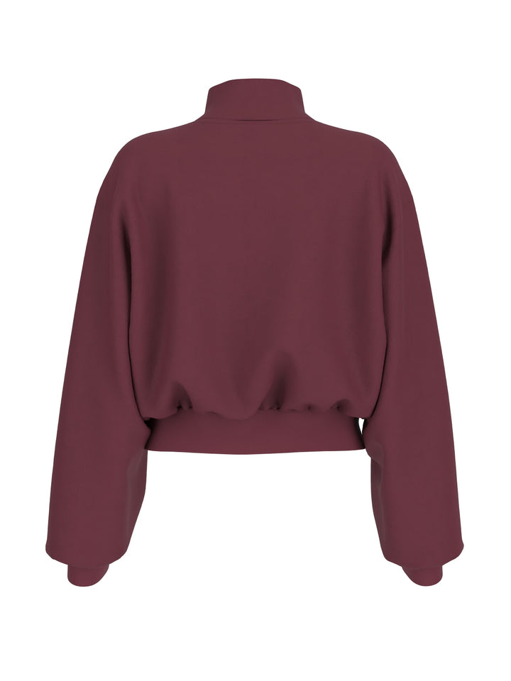 Felpa in tessuto misto viscosa elasticizzato con collo a lupetto, zip corta e logo ricamato oversize sul davanti.