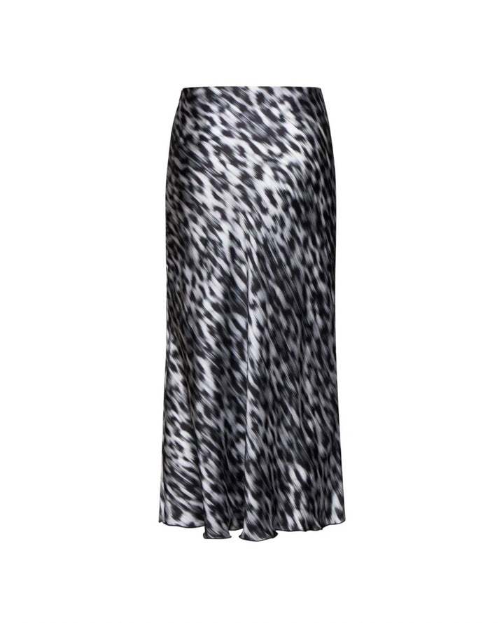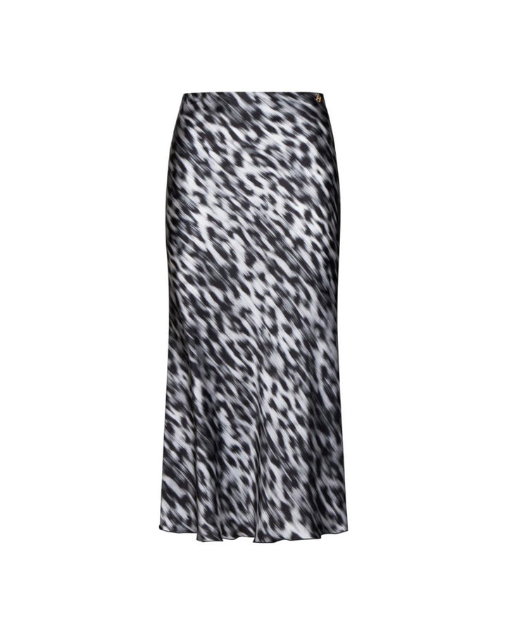 Gonna dalla linea fluida e leggera con taglio svasato che accompagna il movimento in modo naturale. stampa animalier lunghezza maxi silhouette morbida