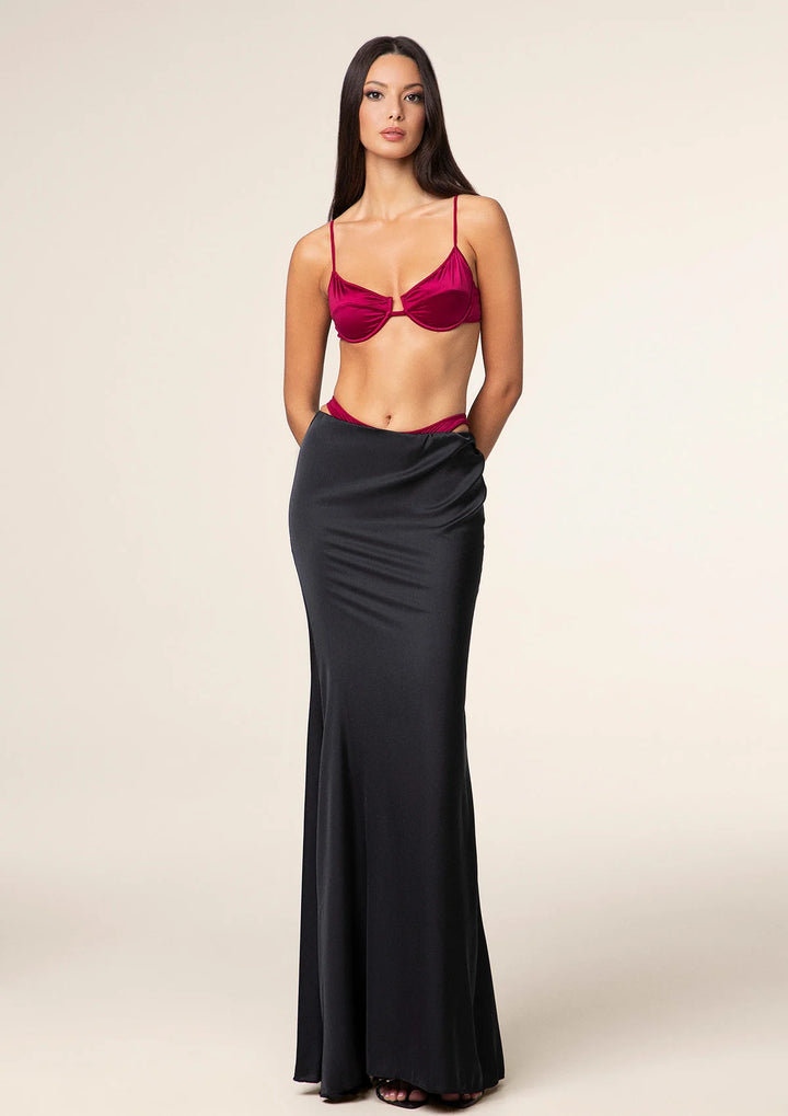 TESSUTO: raso in poliestere COLORE: nero DETTAGLI: capo dotato di elastico in vita e applicazioni in metallo LAVAGGIO: si consiglia lavaggio a mano in acqua tiepida