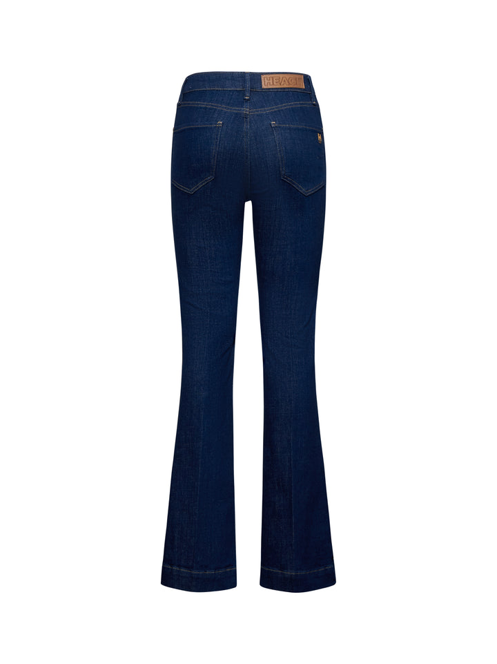 Fit aderente su fianchi e cosce, apertura al fondo con taglio svasato. gamba svasata lavaggio uniforme