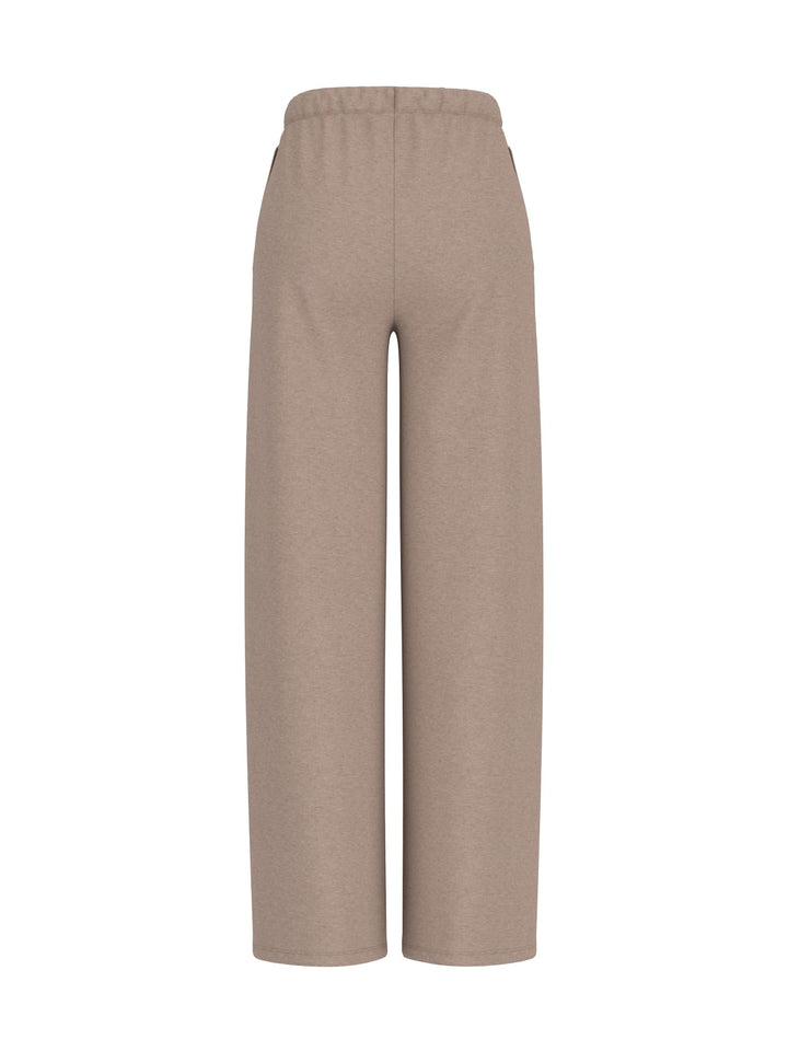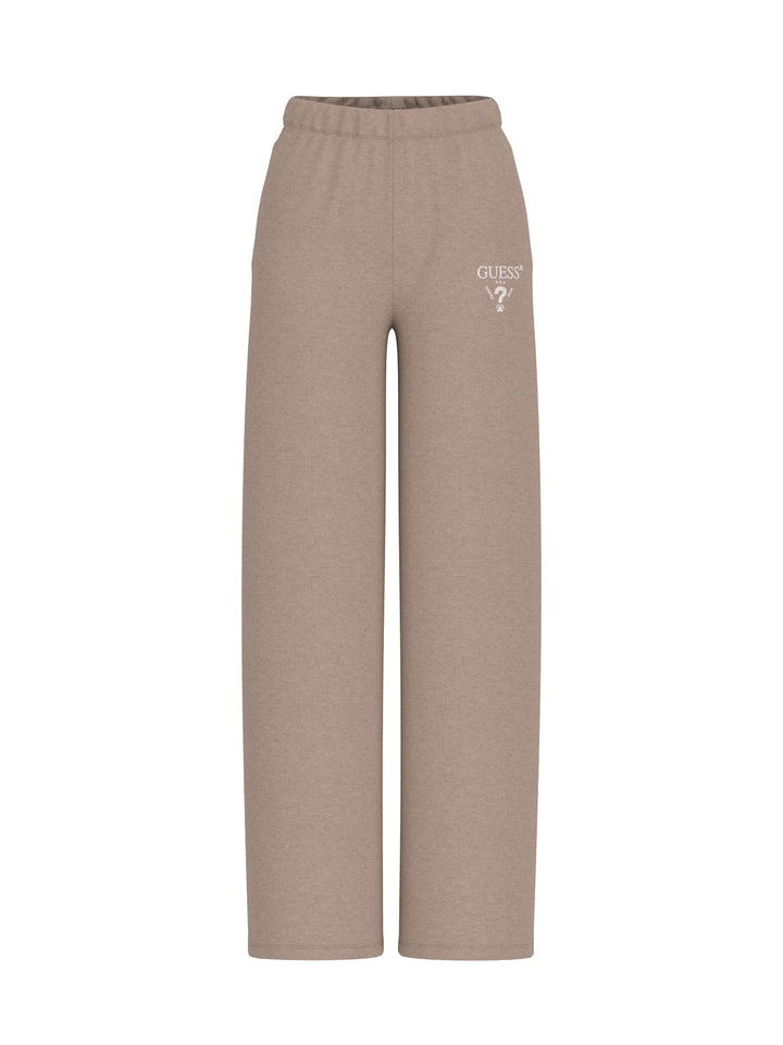 vita elasticizzata per una vestibilità confortevole gamba larga effetto wide leg logo ricamato su fianco tessuto in morbido cotone fondo dritto per un tocco minimal e versatile colore baige dorato