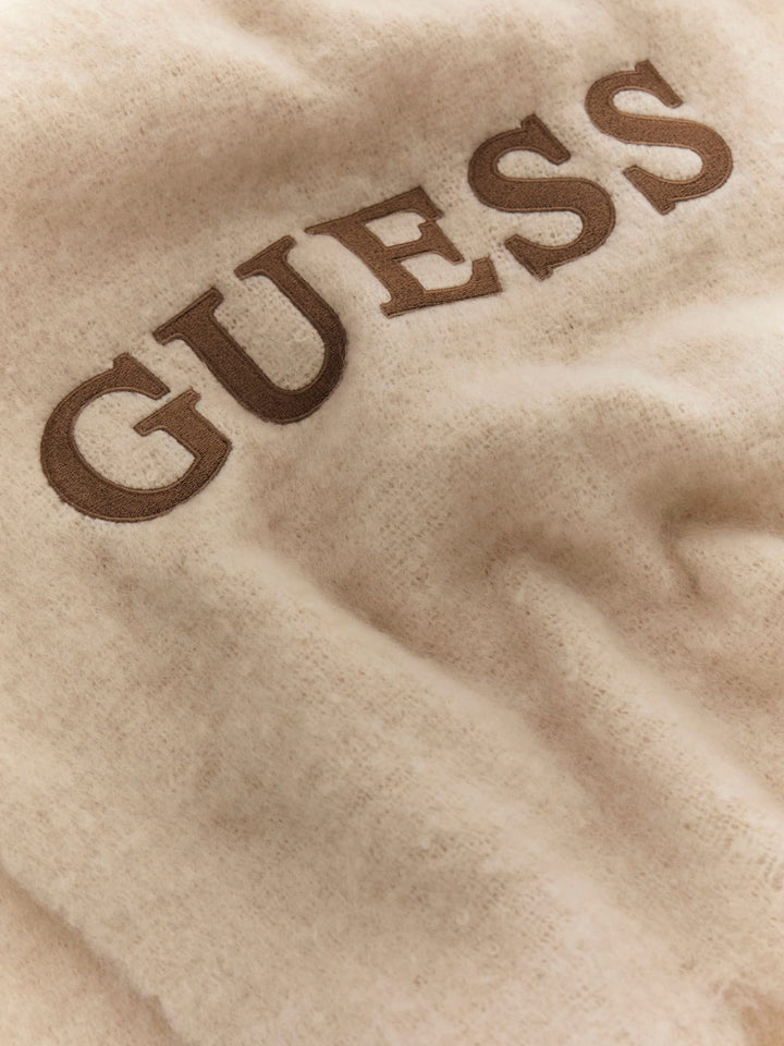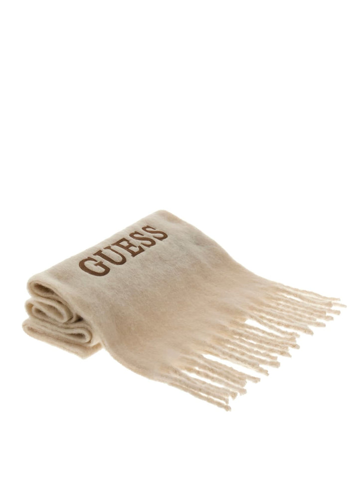 Sciarpa con logo a contrasto e frange decorative alle estremità.