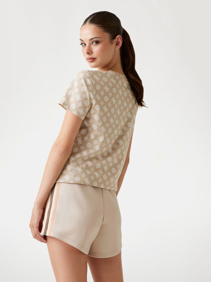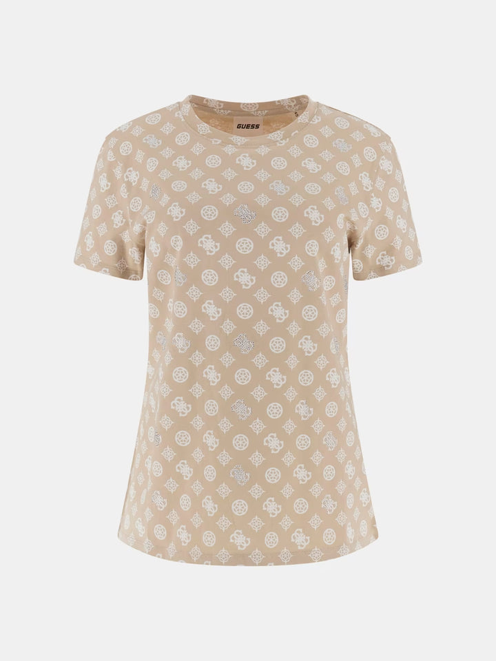 T-shirt in jersey di puro cotone, con classico girocollo e maniche corte. Caratterizzata da una confortevole vestibilità regolare, impreziosita dal logo e motivo 4G all over arricchito da strass.